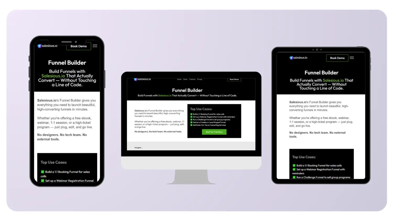 Every funnel is built to work on mobile and desktop — no extra effort needed.