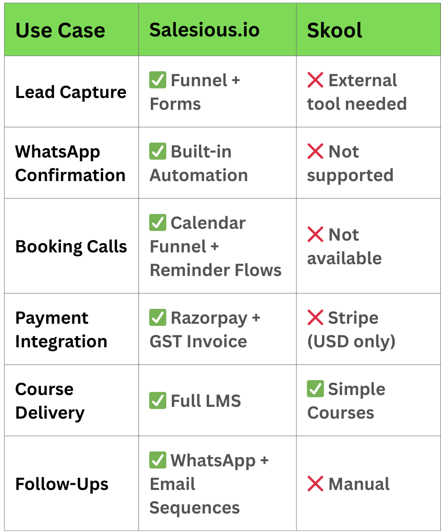 Payment + Invoice Automation | ✅ Razorpay + Stripe/PayPal | ❌ Stripe (USD) only |